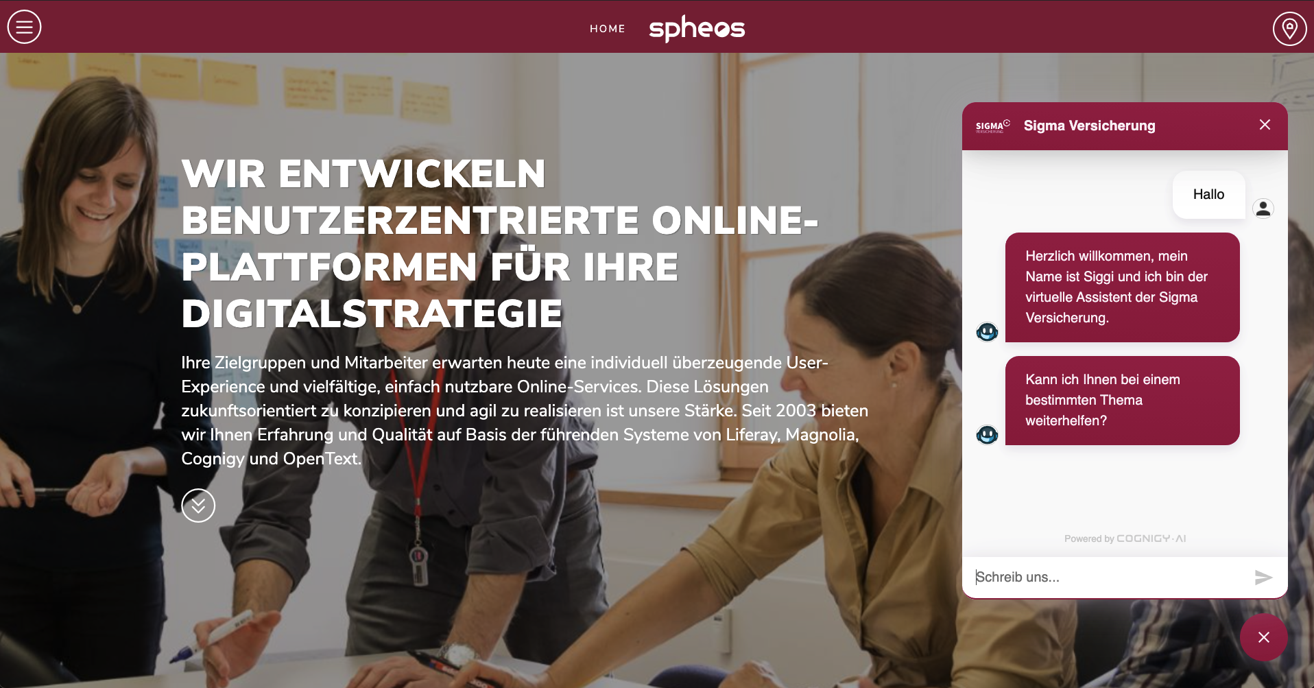 Wie einfach sie Cognigy Chatbot in Liferay DXP integrieren können, zeigt Ihnen Stefan Thomé gerne persönlich. Sehen Sie am Beispiel eines typischen Geschäftsvorfall eines Versicherungsunternehmens, wie ein Versicherungskunde mit Hilfe eines Chatbots einer Dynamikanpassung widerspricht. Mehr erfahren im spheos Screencast auf YouTube.